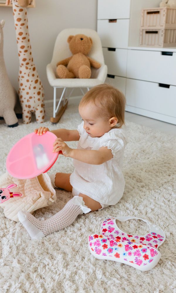 J’ai pris le set rose pour ma fille, elle adore ! Les compartiments sont parfaits pour séparer les aliments, et le bavoir rattrape bien les miettes. En plus le sac est trop chou !