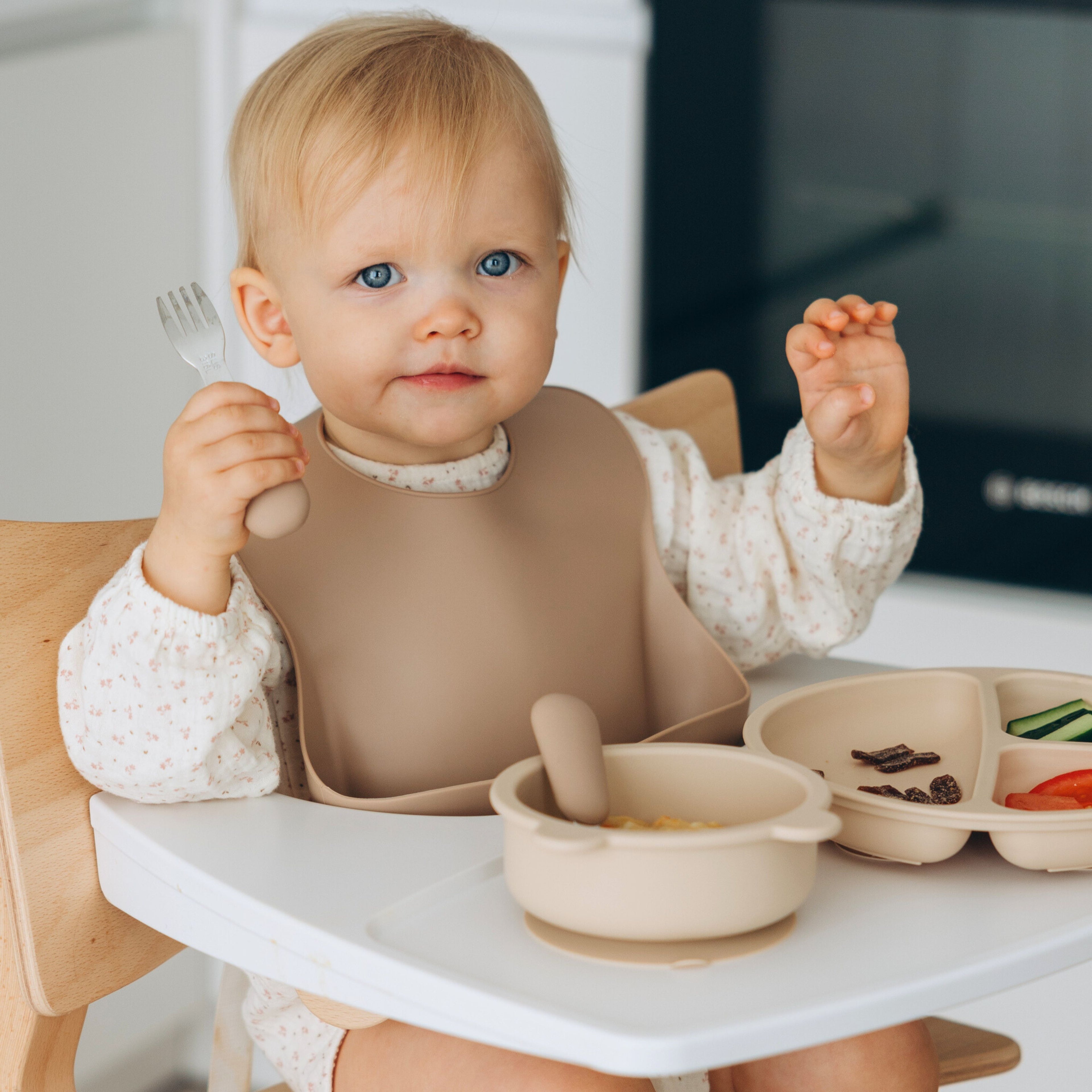 Pensé pour les petites mains : notre set aide bébé à manger seul, à son rythme, sans tout renverser. -