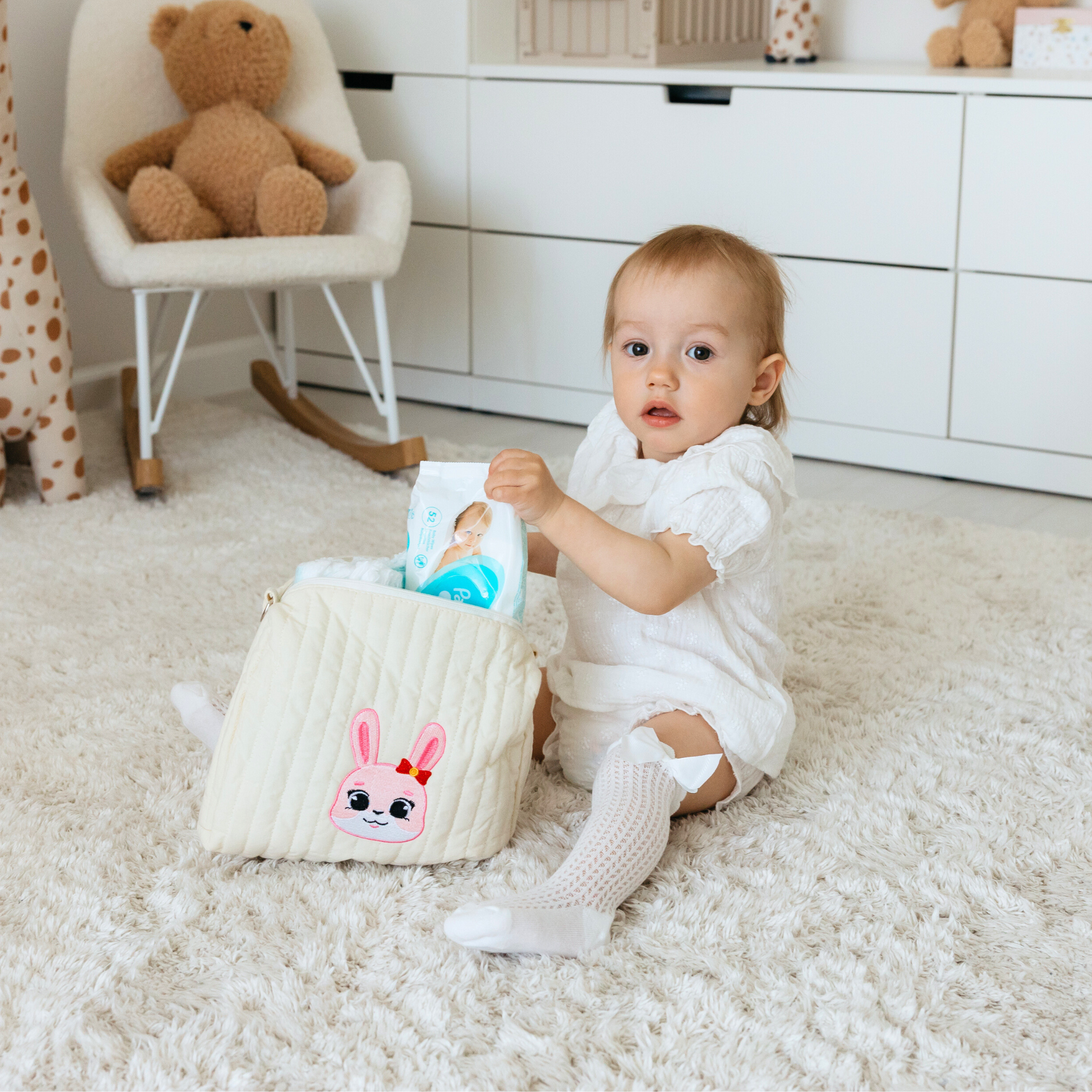 - Sac à couches matelassé, motif lapin